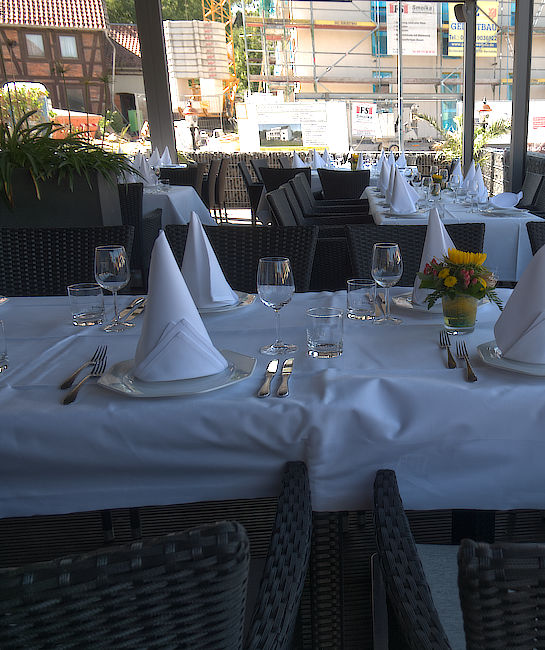 Sie erhalten auf unserer Terrasse selbstverständlich alle Speisen und Getränke, die wir Ihnen auch im Restaurant servieren.