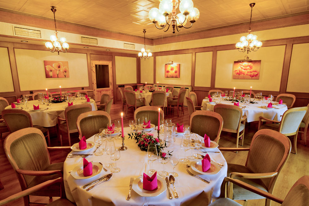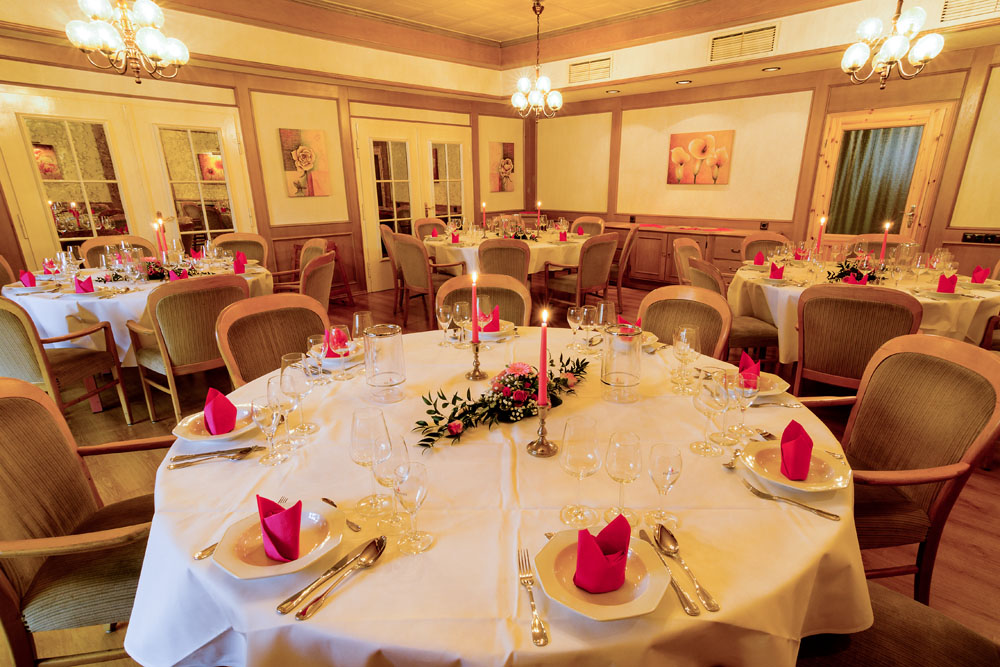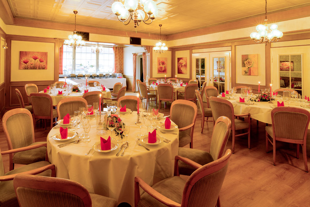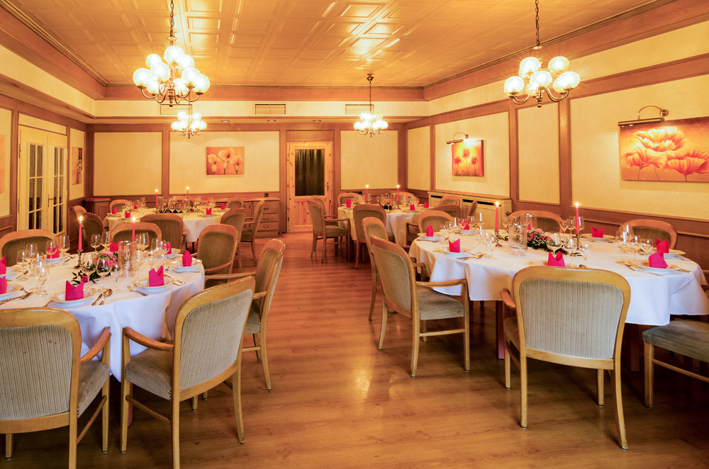 Ob Privat- oder Betriebsfeier, unser Festsaal mit Platz für bis zu 300 Personen bietet das richtige Ambiente für jede Feierlichkeit.