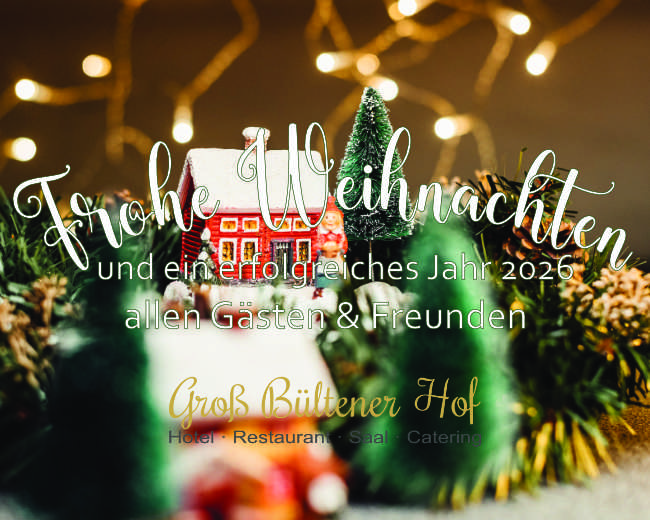 Wir vom Hotel und Restaurant Groß Bültener Hof möchten diese Gelegenheit nutzen, um uns bei Ihnen, unseren geschätzten Gästen, ganz herzlich für Ihre Treue im vergangenen Jahr zu bedanken. Sie haben unsere Säle mit Freude gefüllt und unsere Küche mit Lob belohnt.